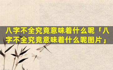 八字不全是指八字中缺少一个或多个天干或地支一。般来说八字不 🐋 全,表,示命理 💮 结构存在缺陷会导致以下影 🕸 响: