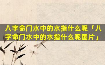 当八字命局 🕸 中出现 🐘 壬水或癸水时,就称为命“门水”。