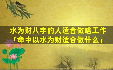 根据八字命理中“水为财”的说法,适“合水为财八字”的人 🐒 的工作有: