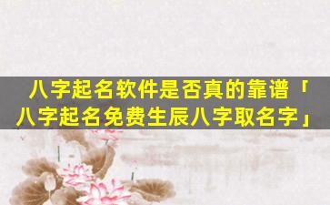 结论八字起名软件可以提供一个基于八字 🌸 学的候选名字列表。其。准确性和可靠性仍存在争议在使 🕸 用此类软件时,重,要的,是。要持批判态度将其视为辅助工具并 🐠 根据其他因素做出最终决定
