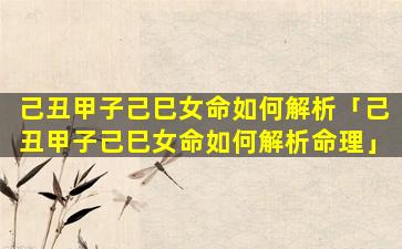 己丑甲子己巳 🌷 女命命理 🌿 解析