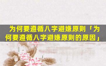 为何要遵循八字避嫌原则 🐎