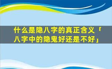 隐八字 🦋 的真 🍁 正 🦢 含义