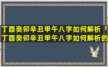 丁酉癸卯 🦆 辛丑甲午八字解析 🐴