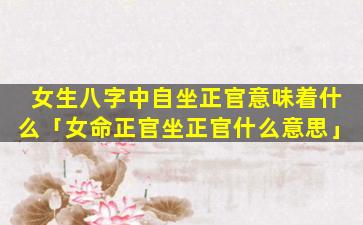 在八字命理中,"女命"正,官,坐正官是指女命八字中日柱的天干为 🐎 正官且该正官坐落在 🐶 正官星之上 🐒 。