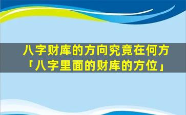 八字财库的方向因人而异,根据出生日期的八字命理推算 💐 得出。