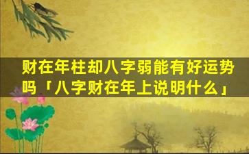 八字中 🦈 财在 🐡 年柱,但八字,弱,能否有好运势需 🐞 视具体情况而定: