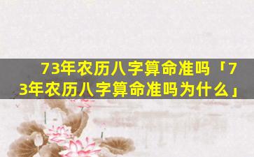 因此,对于73年,农历八字算命是否准没有一个统一的答案 🦊 。它,是一。种 🐯 经验性的说法其准确性因人而异