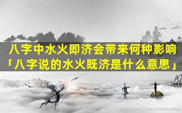水火平衡水火既济的状态 🦉 ,是,说,八字中 🐳 水火两行的力量互相制约既不旺也不弱处于一种平衡和谐的状态。