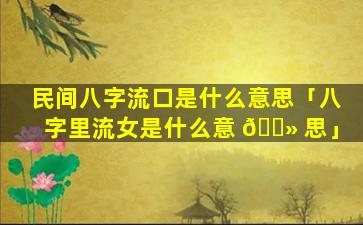 江 🌺 湖骗术 🐺 ——“八字流口 🪴 ”