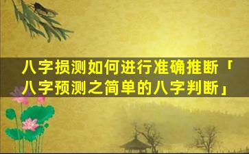 八字损测准确推 🦟 断指南 🐦
