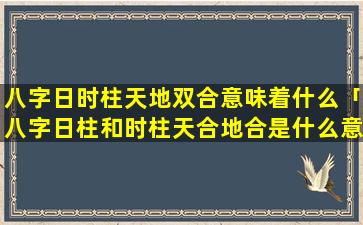 在四柱八字命理中,“日柱时柱天地合”代表 🍀 :