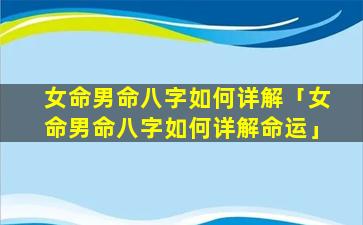 八字命理 🐛 中男女命 🌾 看法上的区别 🕸