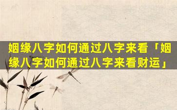 姻 🌾 缘八字解读 🕸 方 🐦 法