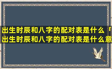 出生时辰和八字 🦢 的配对表是 🌵 基于中国传统命理学中的一 🌸 种配对方法,用于判断两个人的八字是否相合。