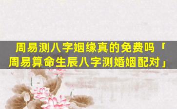 周易测八字姻缘并不是免费的。虽然网上有一些声称 🦊 免费的网站或服务,但。通常需要提供个人信息或进行付费才 🐼 能获得完整的服务