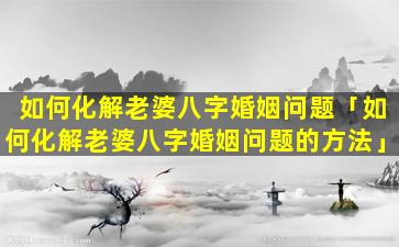 请注意,这,些方法仅供参考具体情况需要 🦉 根据夫妻双方的具体八字和实际情况制定化解方案。建,议。咨询专业命理师或风水师提供专业指导