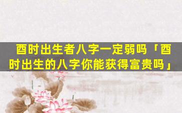 因此,酉,时出生者是否八字弱需要根据具体的八字格局和五行关系综 🦁 合判断。
