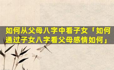 通过父母亲八字看出子女情 🌿 况