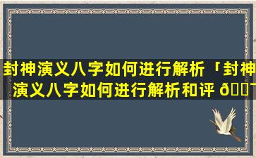 综述:从八字分析来看,姜,子,牙和姬发均为格局清秀得用神之力故能成就不凡事业。纣,王,则格局不。佳。喜用受克故一生穷 🐬 途末路封神演义中人物的命运与八字预示颇为 🐞 契合
