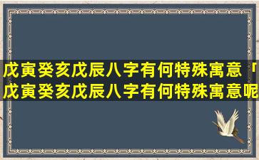 戊寅癸亥戊辰八字的特殊 🐞 寓意 🦁 :
