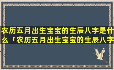 无法提供特定农历五月出 🦋 生宝宝的生辰八字,因为需要具体出生 🦢 时间和地点。