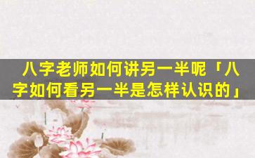 八字老师可以通过分析一个人的 🐳 八字命 🦍 局中的相关信息来预测其另一半的特 🕊 征: