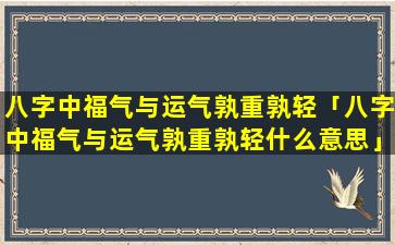 八字中福 🐕 气与运气孰重孰轻 🦅