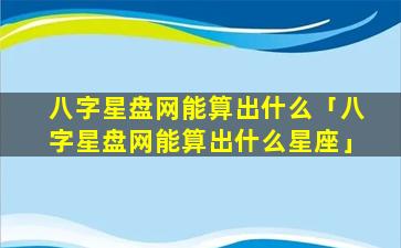 八字 🦆 星盘网不 🍀 能算出星座 🐋 。