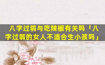在传统中医理论中,没有证据表明八字过弱与吃辣椒有关八字过弱。或,过,强。是一个基于五行生克理论的概念用于评估一个人 🐋 的身体和性格特征而吃辣椒是一种饮食习惯
