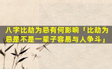比劫為忌不一定表示會一辈子容 💐 易與人爭鬥,還要結合命局的其他因素綜合分析。