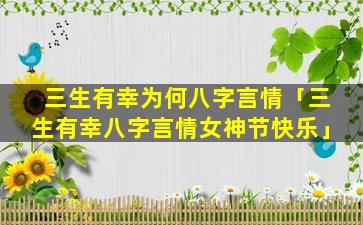 “八字言情”不是一个成 🕷 语不,与“三”生有幸对应。