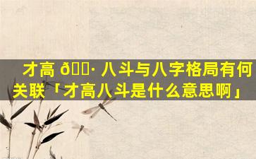 才高八 🐒 斗 🐅 与八字格 🐺 局的关系