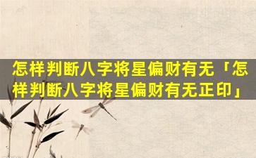 判断八字将星偏财 🐕 是否有正印 🍁 的步骤: