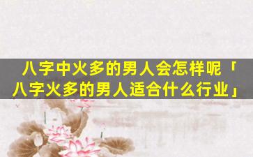 适合八字 🦍 火多 🦄 男 🦟 人的行业: