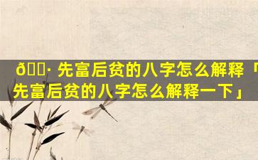 在八字命理中,“先富后贫”是,指,某个人的八字命局在前期运势旺盛财运亨通能够积累财 🐼 富。但,到,了,后,期运势。转衰财运不佳甚至有破财之灾导致财富流失最终陷入贫困境地