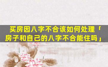 买房 🌿 八字不合并不可 🦈 怕,重 🐠 要的是调整心态。