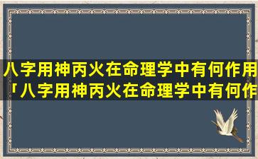 八字用神丙火在命理学中 💮 具有以 💐 下作用:
