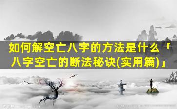 八字空亡的断法 🐟 秘诀(实用篇)