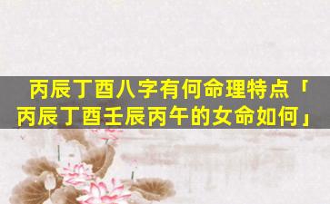 丙辰丁 🐯 酉 🦍 八字 🦟 命理特点