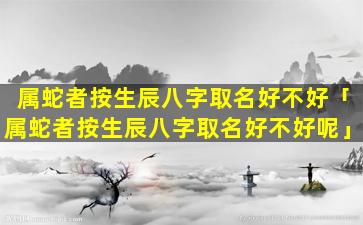 对于属蛇者来说,按生辰八字取名的 🌷 具体适宜与否取决于个人的命理情况。如,果命。格中五行有缺失或不平衡可 🐘 以通过取名来进行弥补