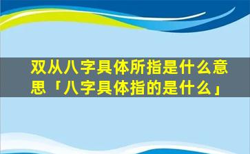 “双 🐼 从八字 🐦 ”的含义 💮 :
