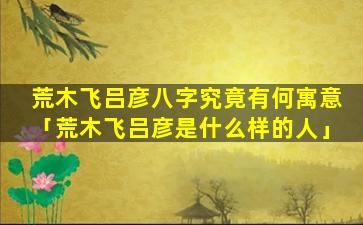 荒木飞 🐵 吕彦的八字 🦅 :