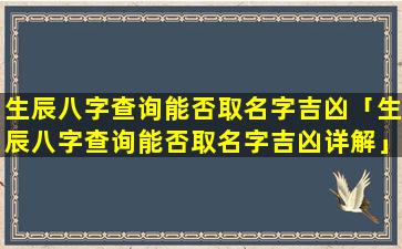 生 🌻 辰八字查询用于 🐞 取名吉凶详解