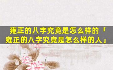 雍 🐺 正帝 🐵 的 🐧 八字: