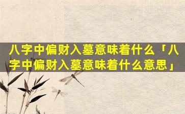 偏财入墓指偏财五行被同类五行 🦍 合冲或 🐡 刑克而入墓,代表偏财 🌷 运势受阻。