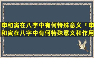 申和寅在八字中 🐕 的特殊意义和作 🐯 用