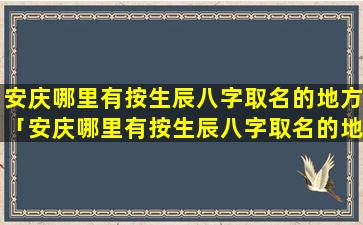 安 🌳 庆按生辰八字 🌼 取名 🐡 的机构: