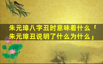 朱元璋八字 🐡 丑时出生 🐼 意味 💮 着:
