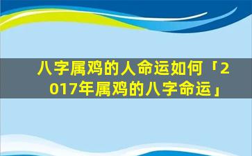 2017年属鸡 🦢 的八 🐈 字命 🌷 运